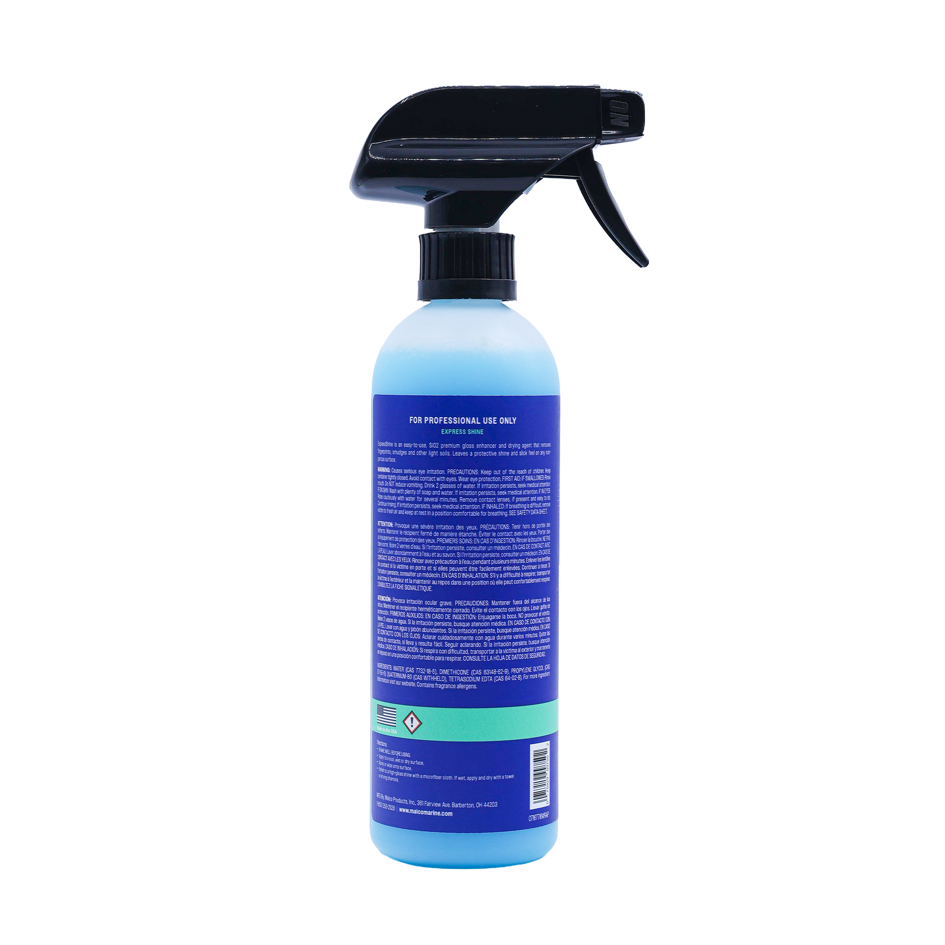 Express Shine SiO₂ Detail Spray is a fast and easy spray-on protectant that enhances gloss while delivering a slick, hydrophobic layer of defense. Safe for use on wet or dry surfaces, this versatile formula creates tight water beading, boosts shine, and protects against UV damage for up to 60 days. It’s ideal for quick cleanups, touch-ups between washes, and even performs exceptionally well as a glass cleaner.