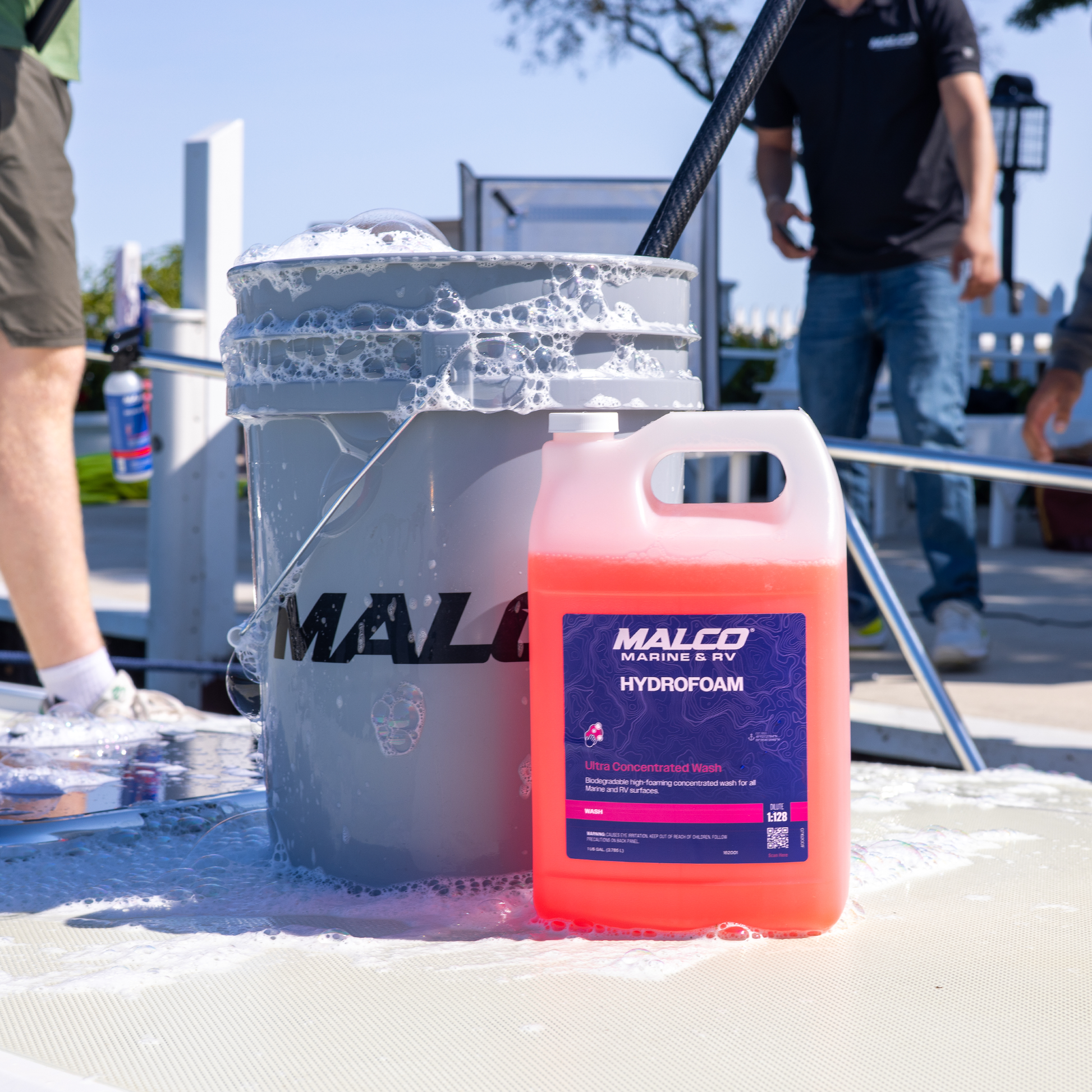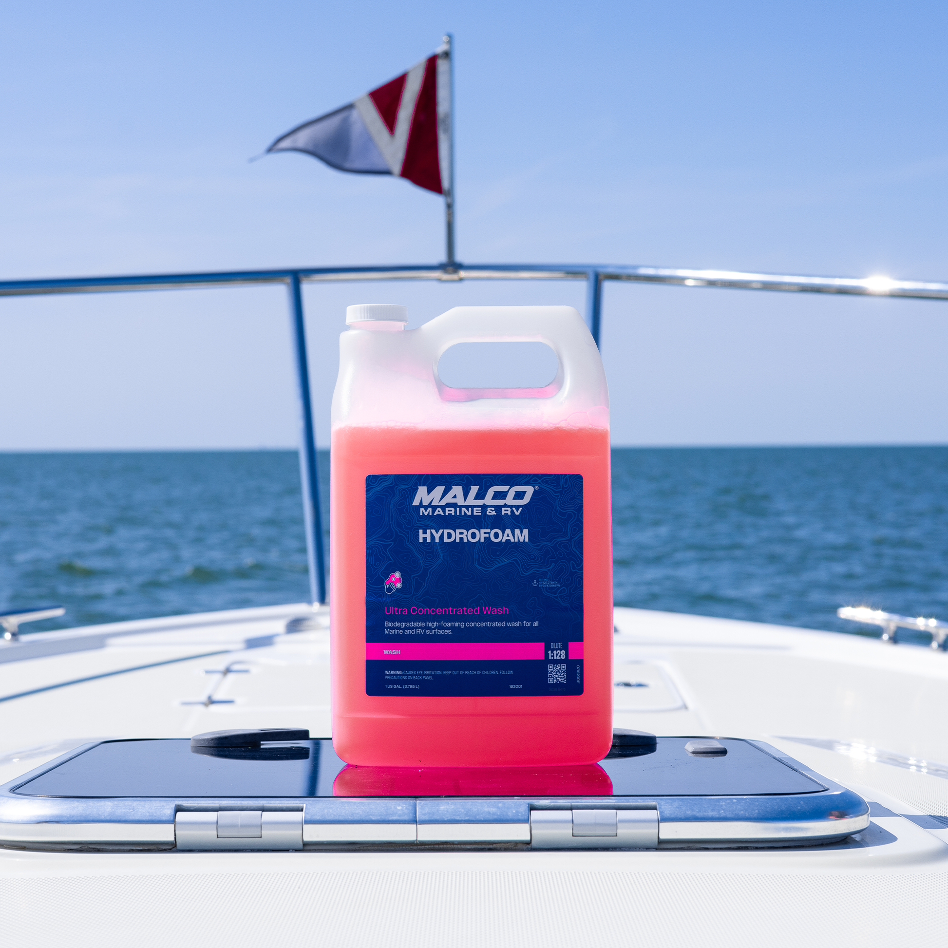 HydroFoam Ultra Concentrated Wash is a powerful, phosphate-free, and biodegradable cleaner that removes algae, salt, fish residue, dirt, and grime from marine surfaces. This environmentally friendly boat wash can be safely used in a marina.