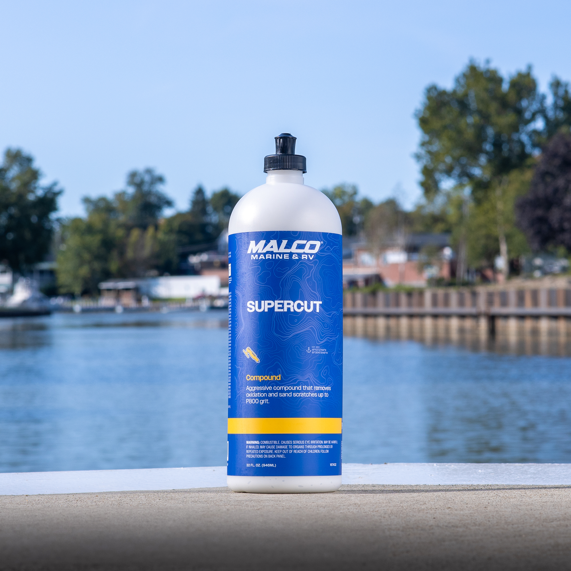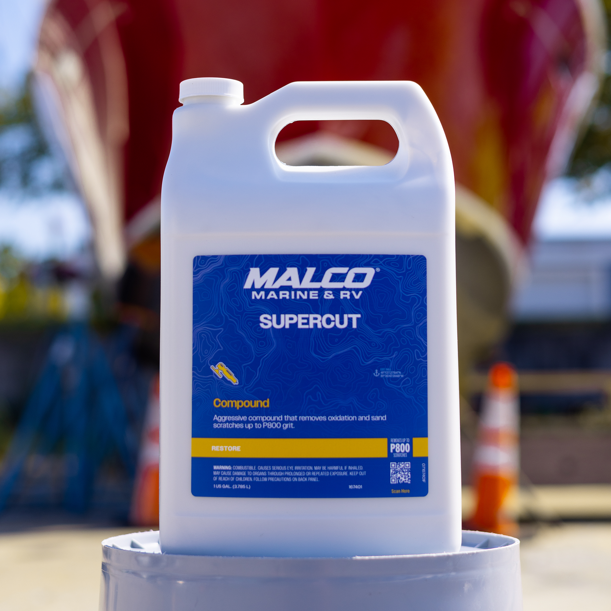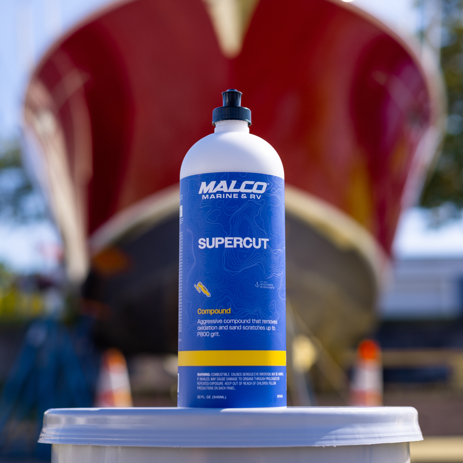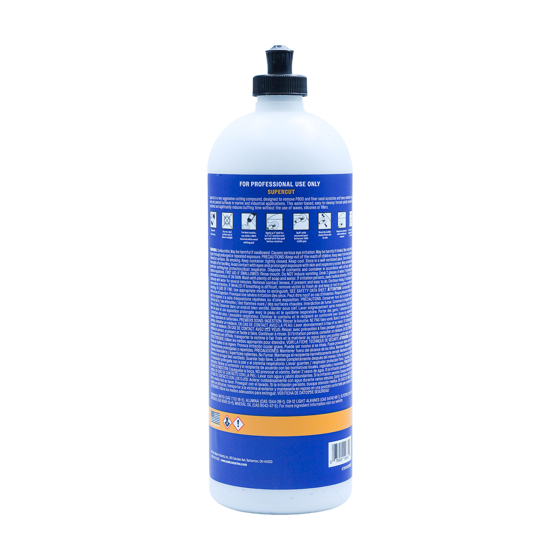 Super Cut Compound is an ultra-aggressive cutting compound formulated to remove P800 and finer dual-action or wet-sand scratches from gel coat, fiberglass, and select painted surfaces. Its powerful, water-based formula quickly eliminates medium to light oxidation and heavy surface defects, restoring clarity and preparing the surface for polishing or finishing steps. For best results, follow up with a finishing polish to achieve a high-gloss, swirl-free finish.